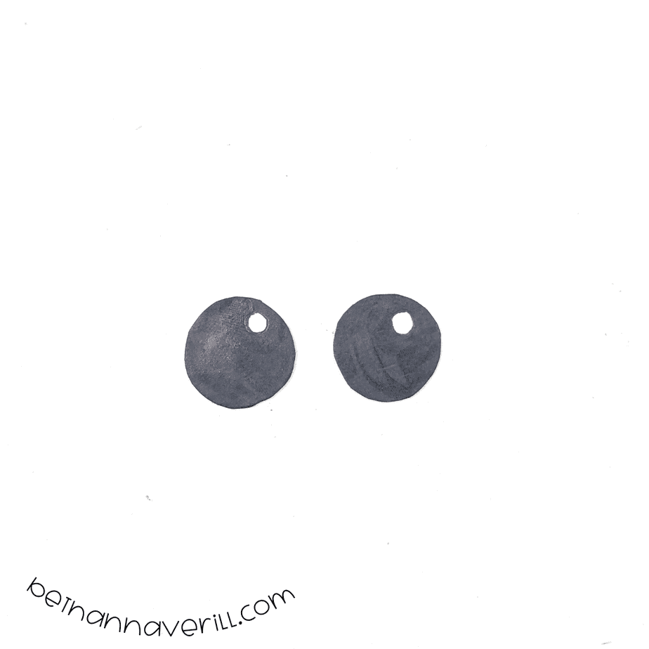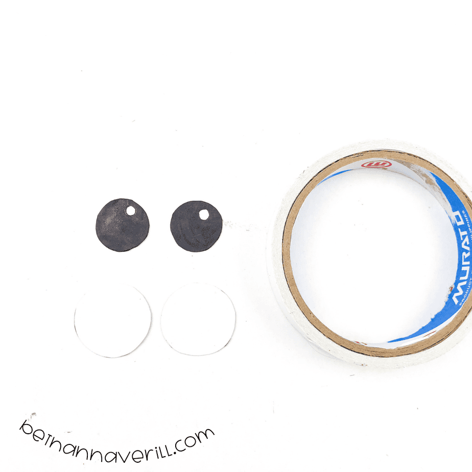 - Use the two small white circles as their eyeballs. Blacken them using a pen leaving a small white dot. Then attach it to bigger two white circles achieving the eyes part.
