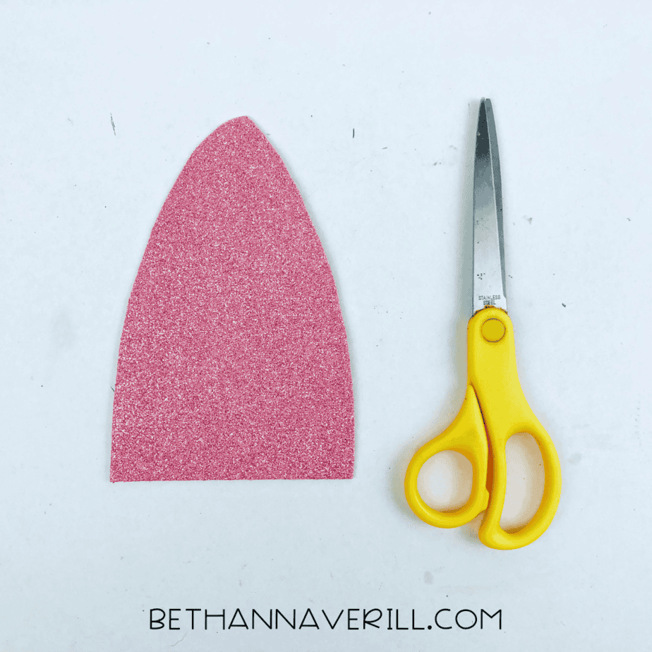- Cut the hat and nose. From a piece of pink sparkly construction paper, cut out a triangle shape to create the gnome's hat.