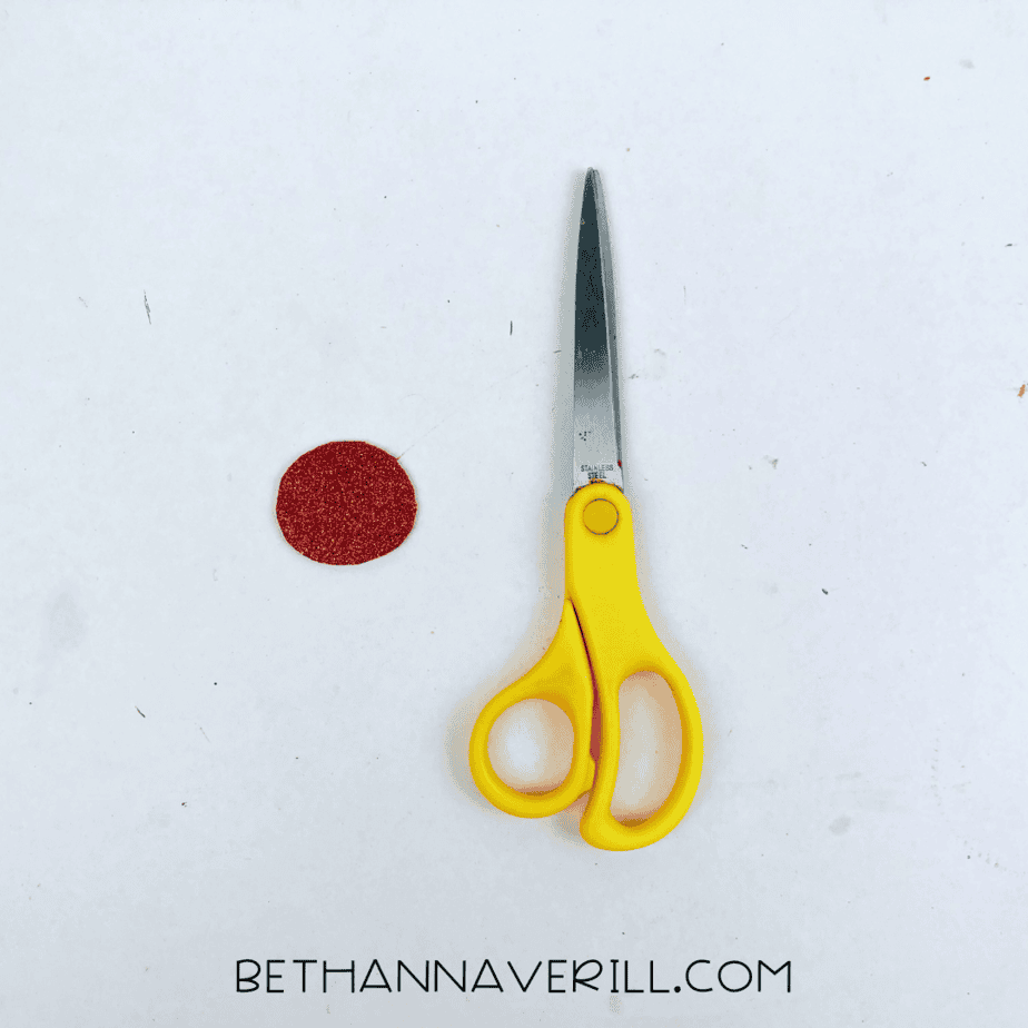 Then, from red sparkly construction paper, cut out a medium-sized circle for the gnome's nose.
