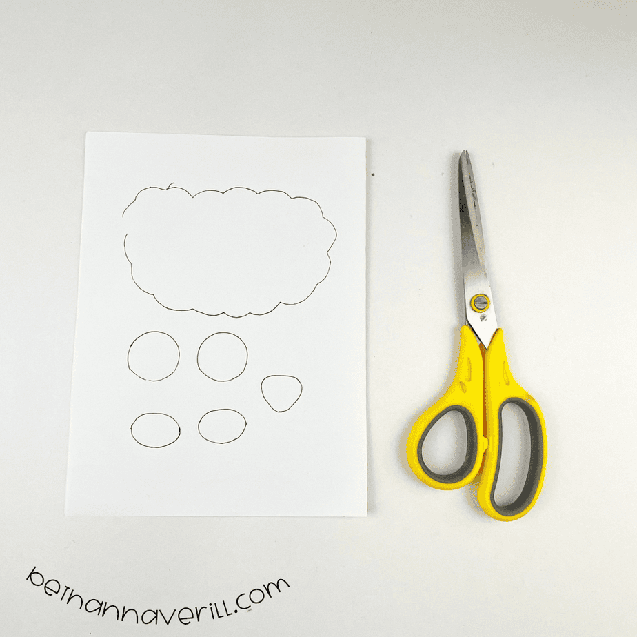 - Finish off your sheep by drawing small scratches to the cloud-like cutted template.