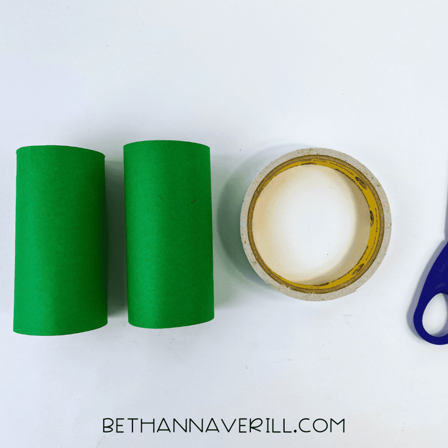 - Cover the toilet paper rolls. Cut dark green construction paper to fit around the toilet paper rolls and secure them with tape or glue.