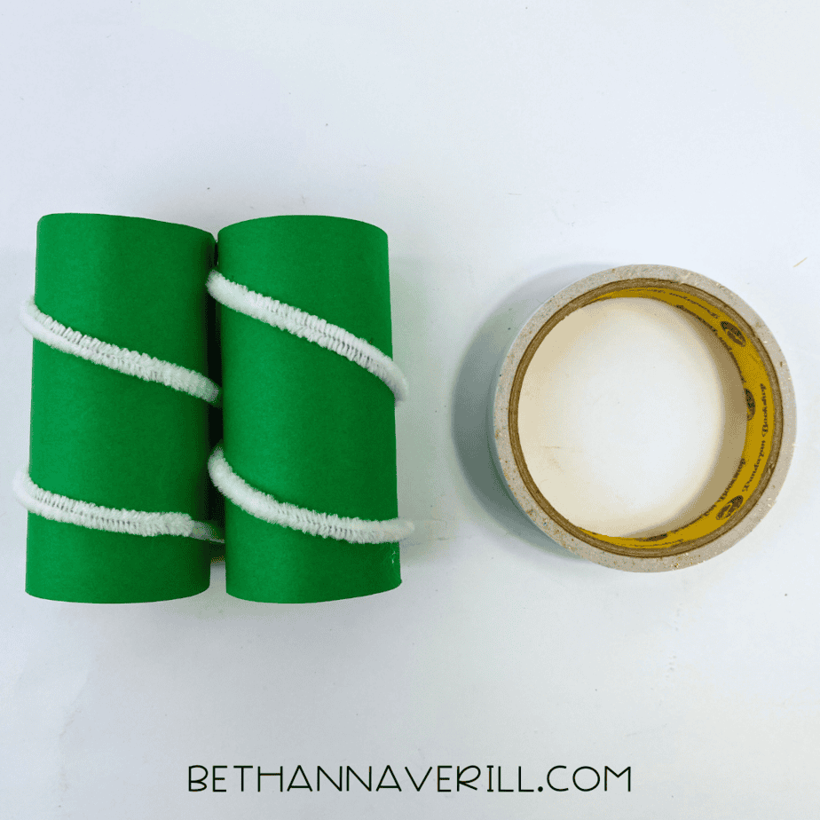 - Wrap the pipe cleaners. Take white pipe cleaners and wrap them around both toilet paper rolls. Glue or tape them down to keep them in place.