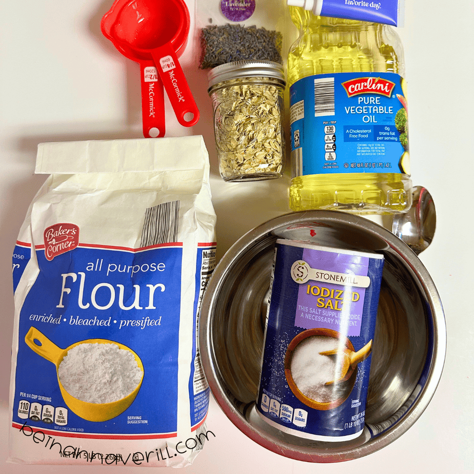 Supplies Needed to Make Lavender Oatmeal Playdough