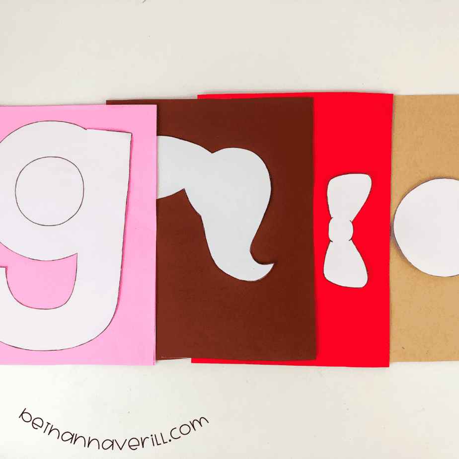 - Use the template to trace the letter 'g' onto pink construction paper. If needed help your preschooler carefully cut out the letter. Demonstrating the cuts first can be helpful.