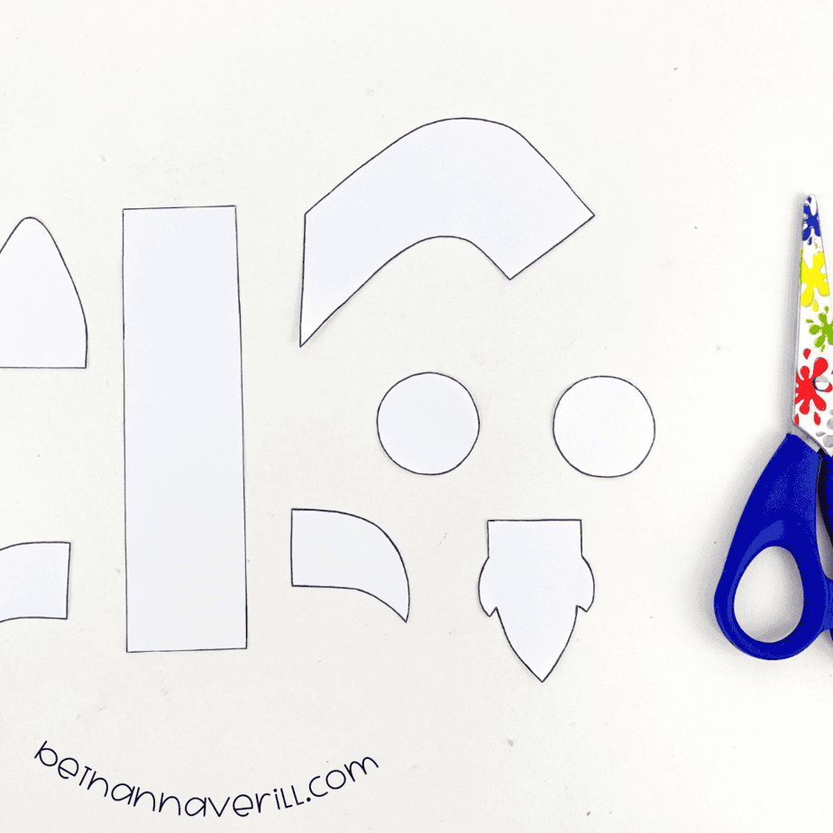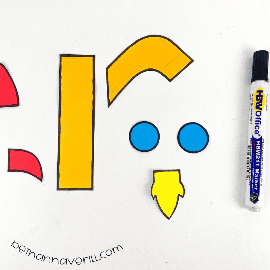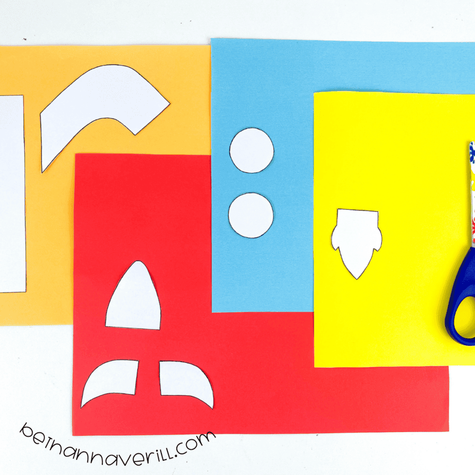 - Trace the shapes onto the different colored papers using the guide photo, then cut them out.