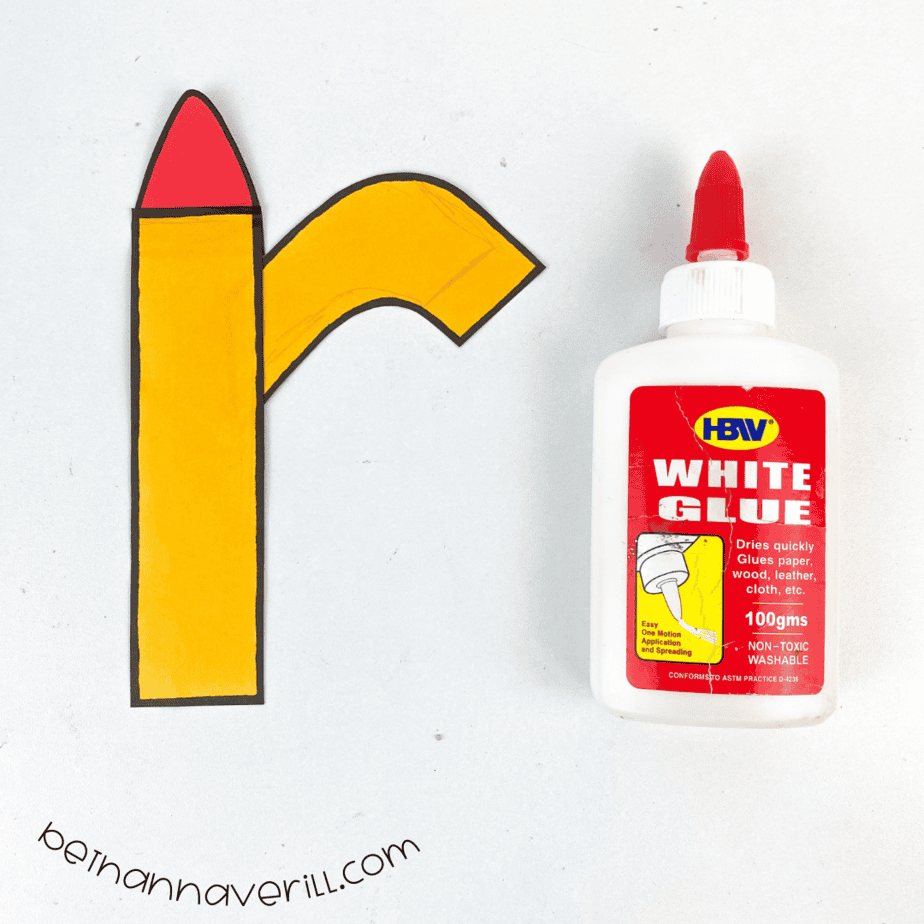 - Glue the red triangle shape to the top of the r.